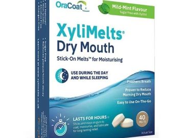 XyliMelts Dry Mouth Melts are oral-adhering discs that stick to your teeth or gums to relieve persistent dry mouth. Use XyliMelts during the day or while sleeping and find temporary relief from frequent thirst, sticky dryness in the mouth and throat, and other unpleasant dry mouth symptoms.